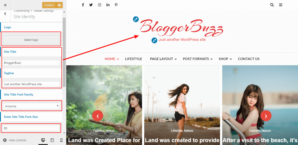 - Go to Appearance> Customize > Header Settings > Site Identity