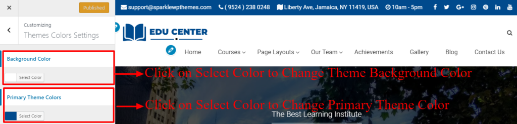 2. Go to Appearance > Customize > Themes Colour Settings
