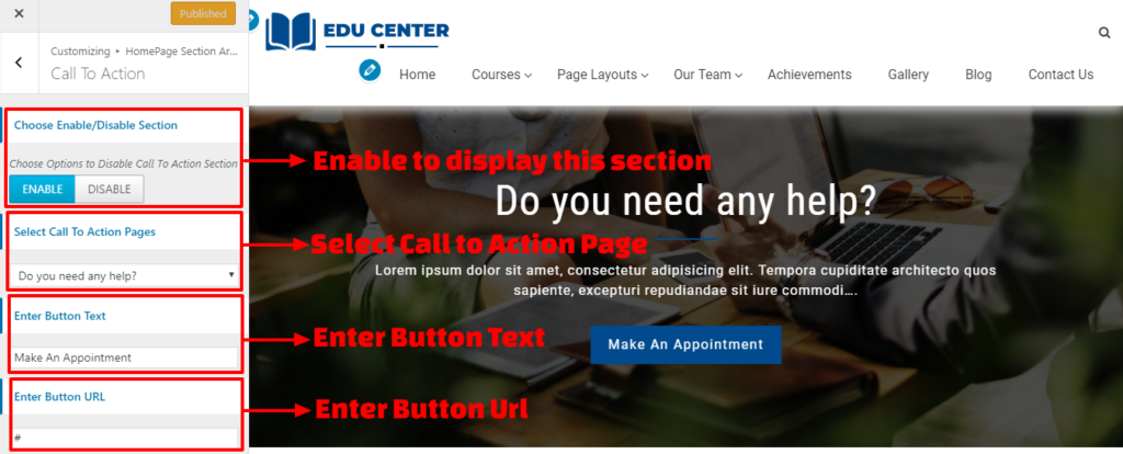 3. Enable to Display Call To Action Section.