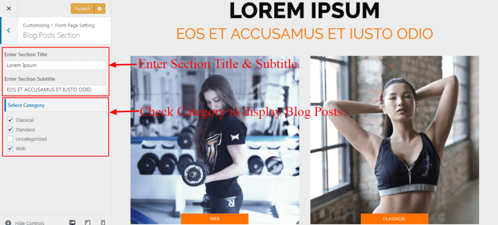 Check Category To Display Blog Posts.