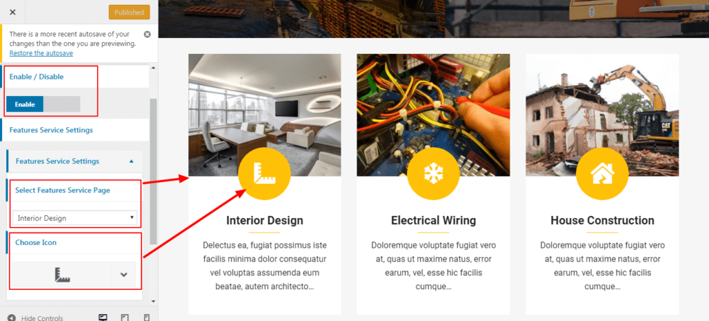3. Home Section > Featured Service Section.