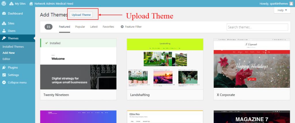 - Upload the un-zipped Medical Heed folder into the: wp-content/themes folder.