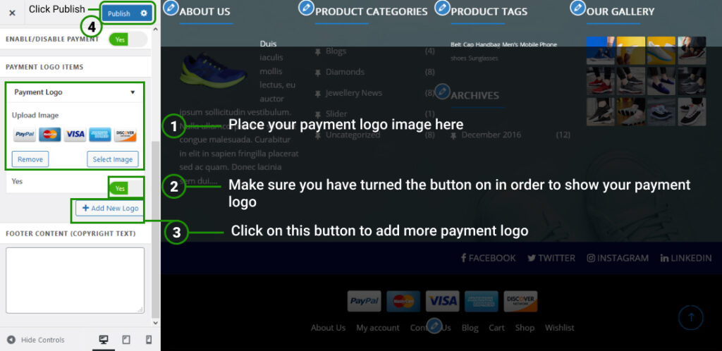 3. Payment Logo Images > Manage or Upload payment logo image per as your want.