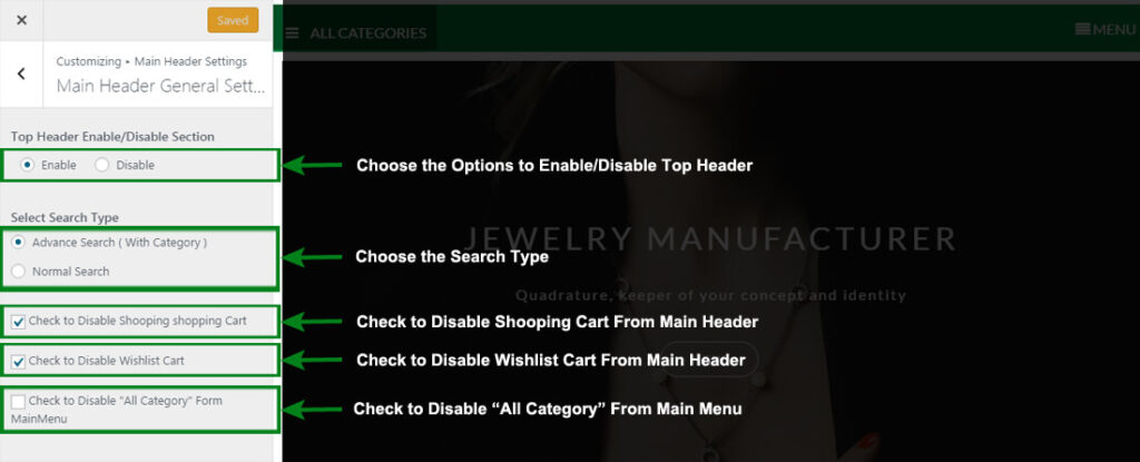 - Main Header General Settins > Manage all the options per as you want.